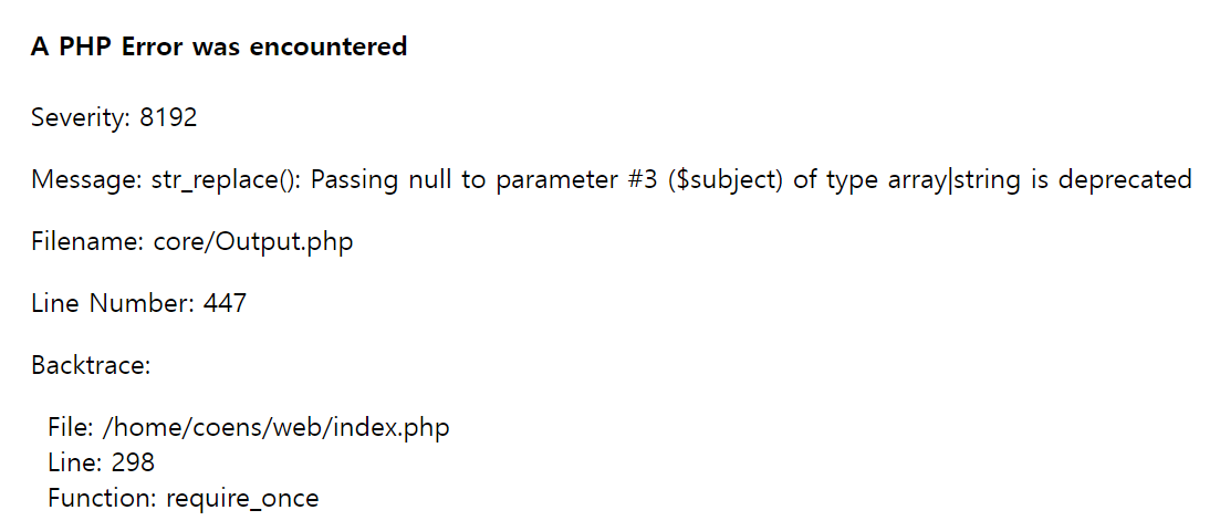 - str_replace 세번째 인자에 null deprecated나오므로, string 형변환 하자